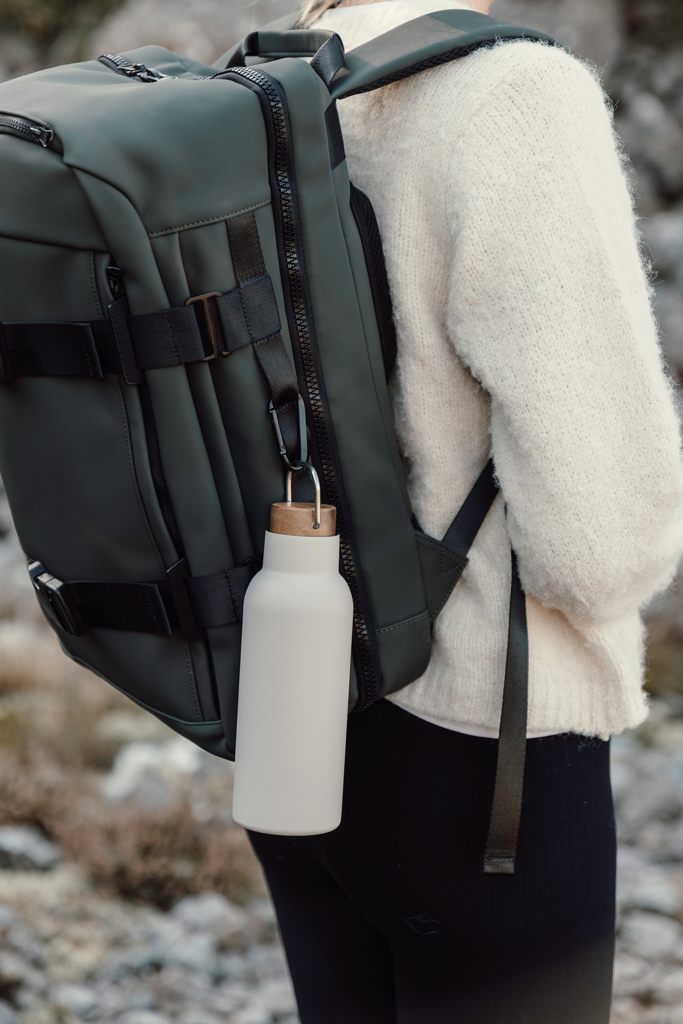 Ciro RCS recycled vacuum bottle is an elegant and functionally designed thermos bottle. The bottle has a lid of acacia wood with a metal loop, which makes the bottle easy to carry with you when you're on the go. Acacia wood is an organic material where variations in shade and colour are natural characteristics. The vacuum construction with double walls in recycled stainless steel ensures that the bottle keeps the temperature intact for a long time, both hot and cold drinks. Certified by RCS (Recycled Claim Standard), RCS certification guarantees that the entire supply chain of the recycled materials is certified. The total recycled content is based on the overall product weight. This product contains 76% RCS-certified recycled stainless steel. The bottle is easy to clean and should only be cleaned by hand. Including FSC®-certified kraft packaging.